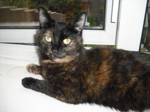 Luna is a young tortoiseshell female, age unknown at the moment. She is the proud and wonderful mum of Amy, Pippa and Sophie – all recently rehomed. She was found as a stray with her kittens and as can be expected is protective of them. Luna is a relaxed and friendly girl who enjoys human company and being fussed and also loves to pose for the camera! She is looking for a warm welcome as new member of a loving family.