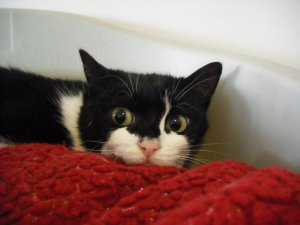 This gorgeous girl is friendly but nervous round new faces due to an unsettled start to her life. She is OK around other cats and enjoys to snuggle up with Socks (another branch cat seeking a furever home).