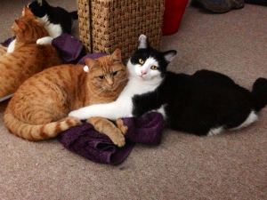 I just thought I would drop a note to say thank you so much for letting me adopt Rory and Seamus last September/October. Now that they are fully settled in they really are showing their affections for each other! They love nothing more than having a good old belly rub and the purring when they get one puts most helicopters to shame.