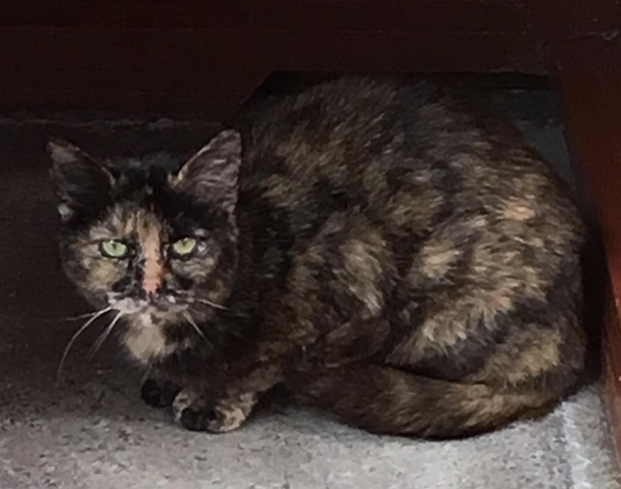 This gorgeous Tortoiseshell girl is available for adoption. She’s approximately 3 years old and came on to us as a stray. She’s quite quiet and timid but a really lovely girl.