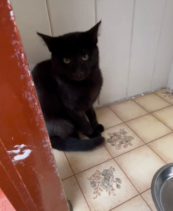 Cocoa is another little black kitty of about 5 months of age. Our photographer caught him practicing for a part in the TV series Bewitched. Fortunately, he is really an angel and loves people too much to keep up the evil witch’s cat role for long.