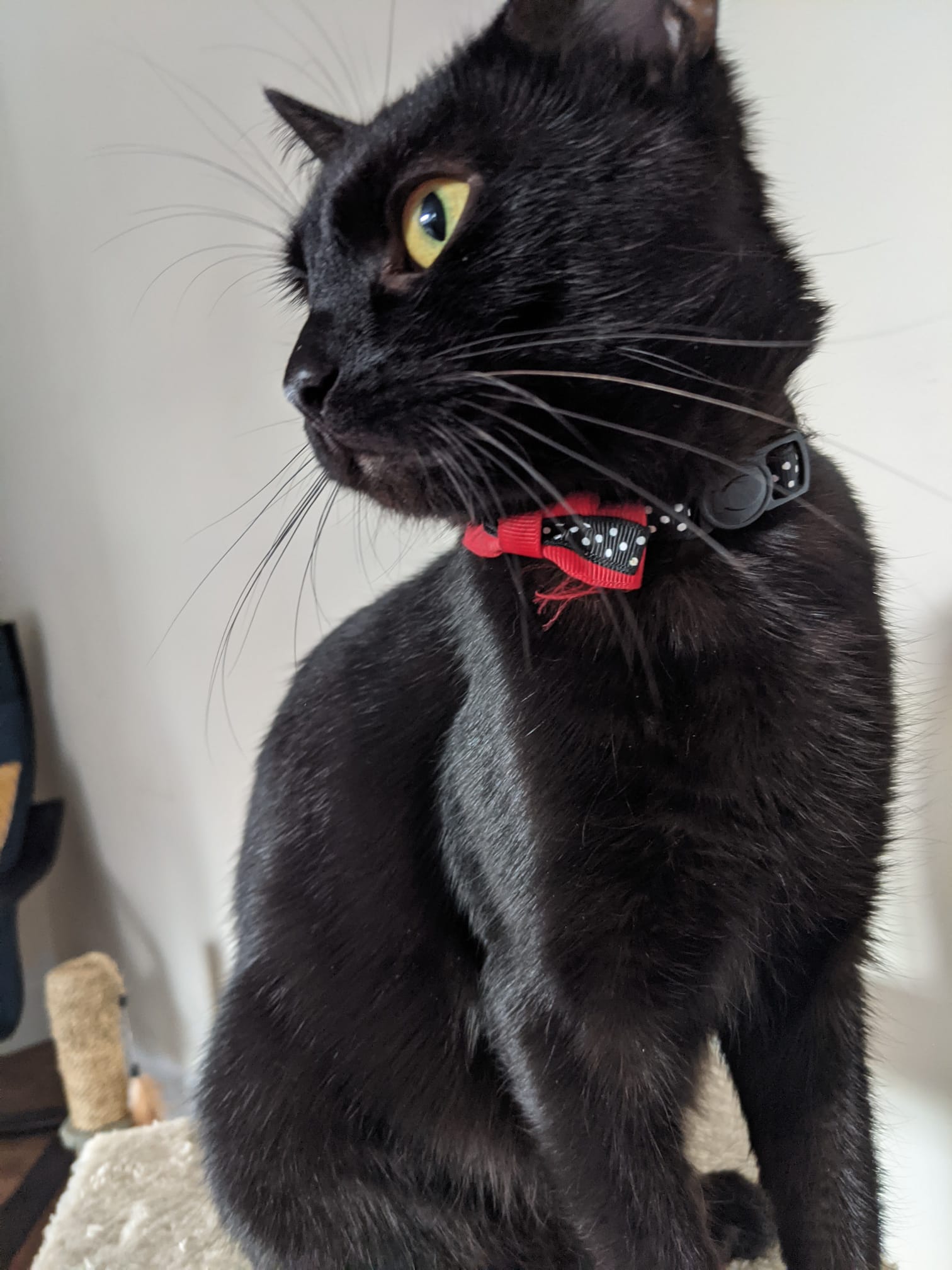 Mandy likes to play, chasing her favourite bouncy ball around, and once she gets to know you she loves a good cheek scratch. Mandy also likes a tasty treat, a comfy spot for an afternoon nap, and has mastered the cat flap so she can come and go as she pleases. She’s an easy-going cat, and not needy, but will let you know when she wants something. Mandy can be left alone for a few hours as she is happy to enjoy her own company.