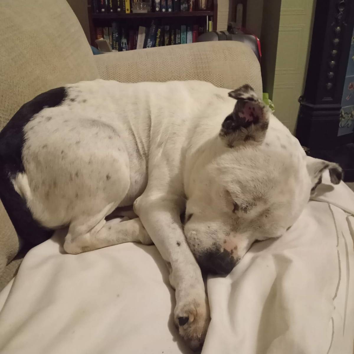 This was Ipsy when she arrived at her fosterer’s home a few weeks ago. Regular meals, treatment for her eyes and ears and her recovery has been staggering.