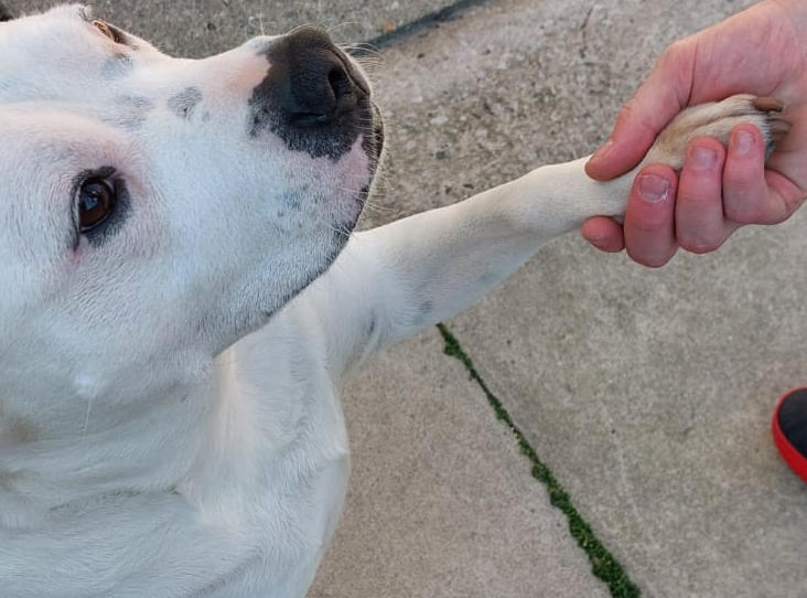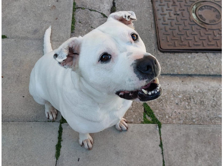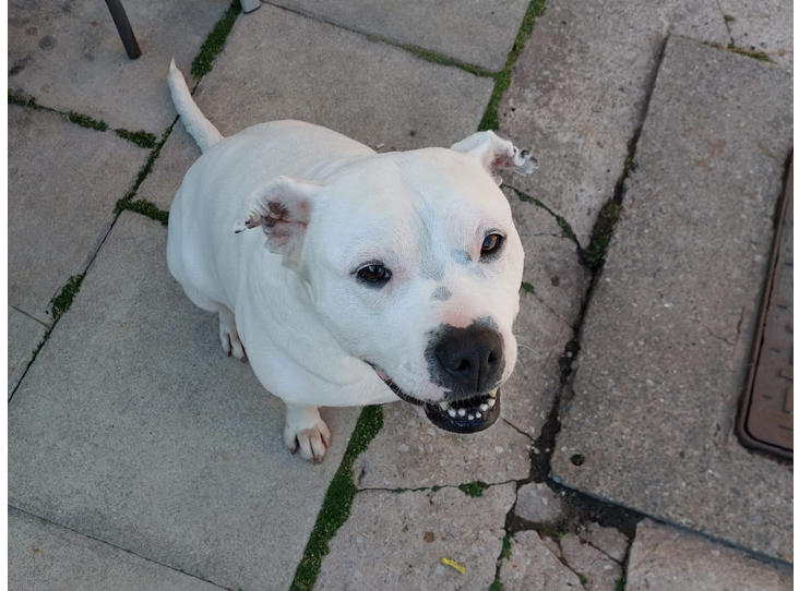 She is full of beans and fun and for this reason we would not rehome her with small children as she is not used to them and may knock them over when she gets giddy.
