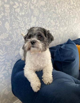 He could possibly share a home with another friendly, little dog. He hasn’t lived with cats or other small animals.