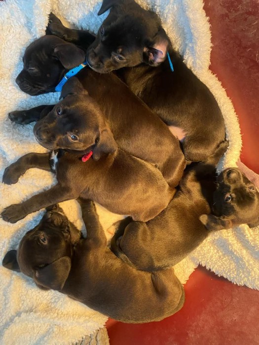 Our gorgeous puppies can be reserved as they will be 8 weeks old on 1st March and ready to meet their forever human families. Mum was a French Bulldog and Dad a Labrador but we have no idea who they will take after whether it’ll be mum or dad. However, due to their current size, they are expected to become medium sized dogs, somewhere. We have 3 boys and 3 girls.