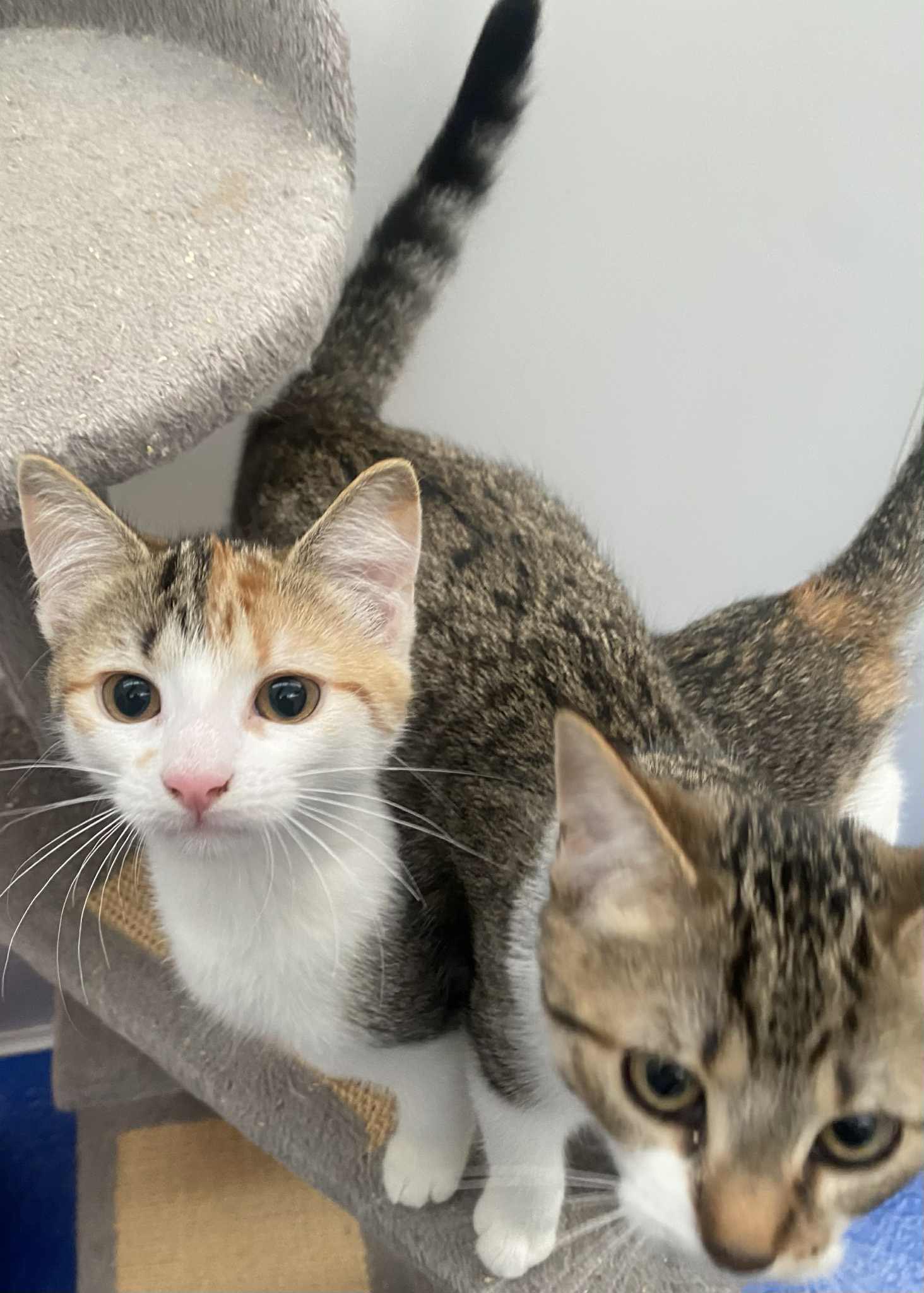 This mischievous pair are very much bonded and we are looking to home them together. They are around 14/16 weeks old.