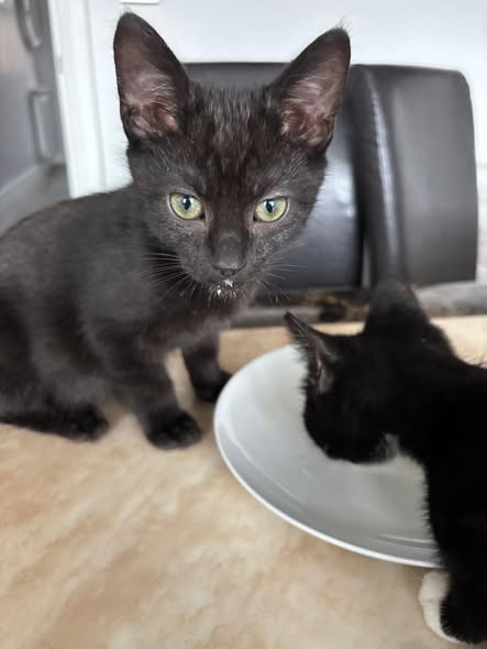 They are currently in house foster with another cat and a dog and taking things in their stride.